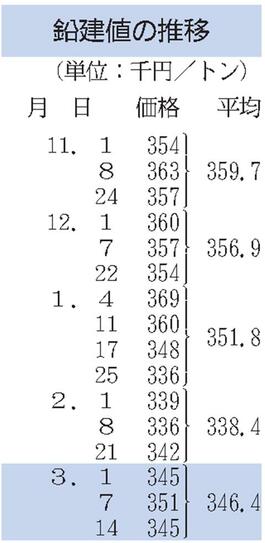 三菱マテ、鉛建値6000円下げ