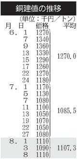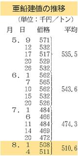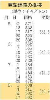建値/JX金属、銅2万円上げ/三菱マテ、鉛9000円上げ