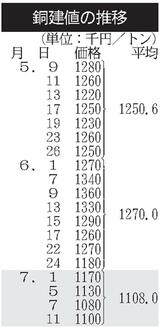 建値/JX金属、銅2万円上げ/三井金属、亜鉛1万8000円上げ