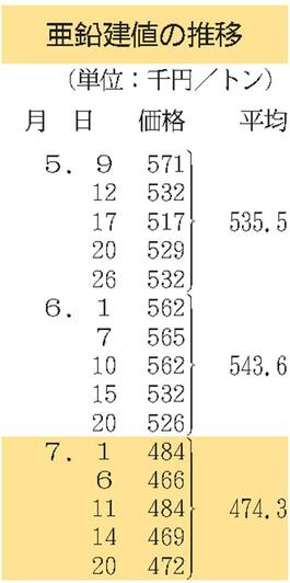 建値/三菱マテ、鉛3000円下げ/三井金属、亜鉛1万5000円下げ