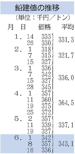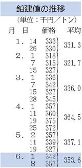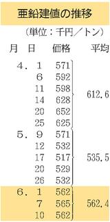 建値/JX金属、銅4万円下げ/三井金属、亜鉛3万円下げ