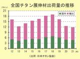 21年のチタン展伸材出荷/1万2000トン割れ12年ぶり低水準