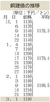 建値/JX金属、銅3万円上げ/三菱マテ、鉛6000円上げ