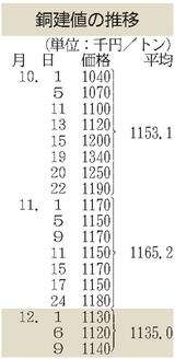二次合金メーカー/12月前半積み原料買値/関東地区は調整安、最大10円下げ