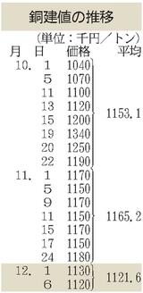 二次合金メーカー/12月前半積み原料買値/中部地区、大半が据え置き