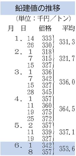 建値/JX金属、銅1万円下げ/三井金属、亜鉛3000円上げ