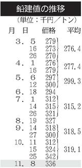 建値/JX金属、銅2万円下げ/三井金属、亜鉛2万4000円下げ