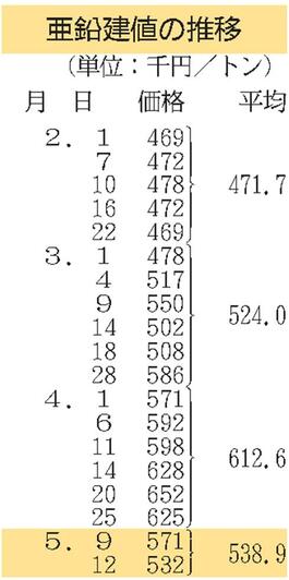 建値/三菱マテ、鉛3000円下げ/三井金属、亜鉛2万7000円下げ