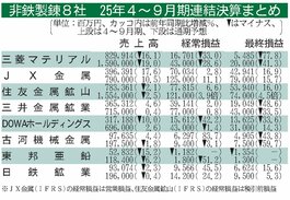 非鉄製錬8社の4~9月期/5社経常増益/非鉄価格上昇、半導体関連需要の拡大寄与/7社が通期予想を上方修正