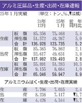 1月のアルミ圧延品出荷/2.8%増、12万9493トン
