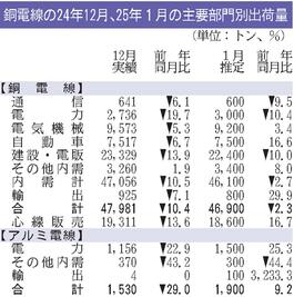 1月の銅電線出荷/2.3%減、4万6900トン/建設・電販など減少