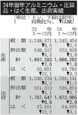 アルミ圧延品の12月出荷/前年並み、車・缶材など不振