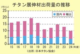 24年度のチタン展伸材出荷/24%減、9894トン/15年ぶり1万トン割れ