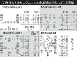 24年度のアルミ圧延品出荷/低水準続く、167万6048トン