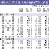 7月の銅電線出荷/1.3%減、5万1200トン/建設・電気機械向けなど減少