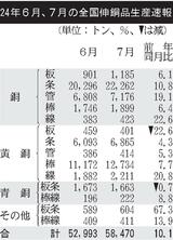 伸銅品の7月品目別生産量/14品種中、12品種が増加