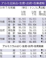 7月のアルミ圧延品出荷/3.6%増、15万706トン