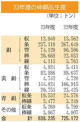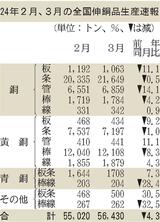 3月の伸銅品生産/4.3%減、5万6430トン/在庫調整で需要低迷