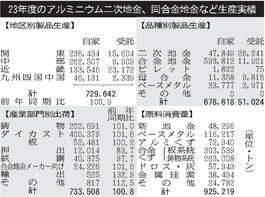 23年度のアルミ二次合金生産/2年ぶり増、72万9642トン