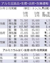 2月のアルミ二次合金生産/1.4%増、5万8394トン