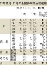 伸銅品/12月品目別生産/14品種中、5品種増