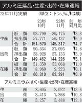 11月のアルミ圧延品出荷/5%減、車向け除き停滞