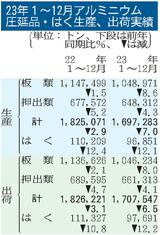 23年のアルミ二次合金生産/微増の73万958トン