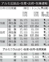 12月のアルミ圧延品出荷/2.2%減、建材向け低迷