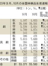 伸銅品の10月生産/13%減、5万5580トン/22カ月連続減