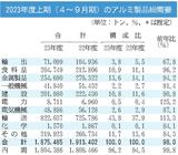 4~9月のアルミ製品総需要/2%減、188万トン/非自動車分野停滞