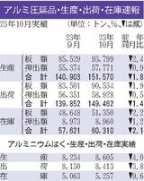10月のアルミ圧延品出荷/車材堅調も1.4%減、14万9462トン