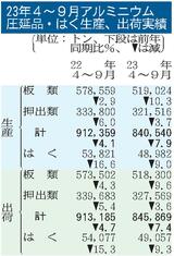 4~9月のアルミ圧延品出荷/7.4%減、84万5869トン