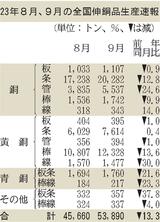 4~9月の伸銅品生産量/17%減、31万1308トン/自動車・半導体関連など需要低迷