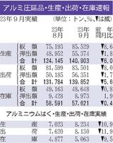 9月のアルミ圧延品出荷/5.6%減、13万9852トン/自動車向けのみ堅調