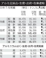アルミ新地金の7月末港湾在庫/1.9%減、35万600トン