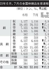 伸銅品の7月品目別生産量/14品種中11品種が減少