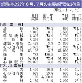 7月のアルミ電線出荷/24%増、2200トン/全分野が増加