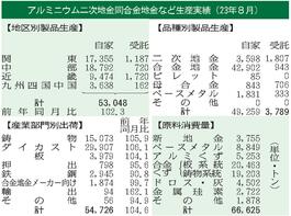 8月のアルミ二次合金生産/4カ月連続増、5万3048トン