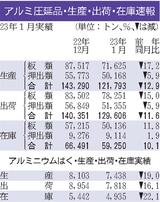世界の1月アルミ生産/6.3%増、567万6000トン