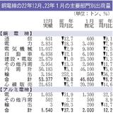 1~11月の軽金属製品生産/主要3品1.4%減の60万1120トン