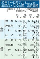 22年のアルミ圧延品出荷/3%減、183万トン/5年連続の200万トン割れ