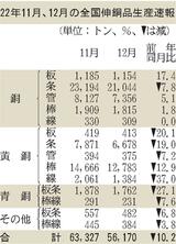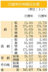 2022年暦年の伸銅品生産/3.4%減、74万7677トン/銅条は過去2番目の高水準