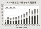 22年のアルミ圧延品輸入/2年連続最高、25万3650トン
