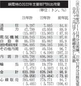 22暦年の銅電線出荷/1.1%減の62万6248トン/自動車・電気機械向けなど前年割れ