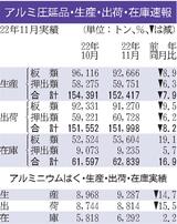 11月の世界アルミ生産/2.4%増、545万7000トン