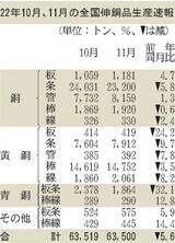 11月の伸銅品生産/5.6%減、6万3500トン/通信・家電向け低迷