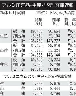 アルミ圧延品/6月出荷量1.2%減/半導体製造装置向けなど停滞