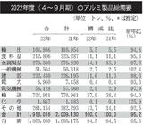 アルミ製品の4~9月期総需要/輸送機向け不振、5%減の191万トン