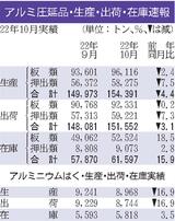 10月のアルミ二次合金生産/2カ月連続増、6万5942トン
