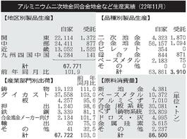 11月のアルミ二次合金生産/3カ月連続増、6万7771トン